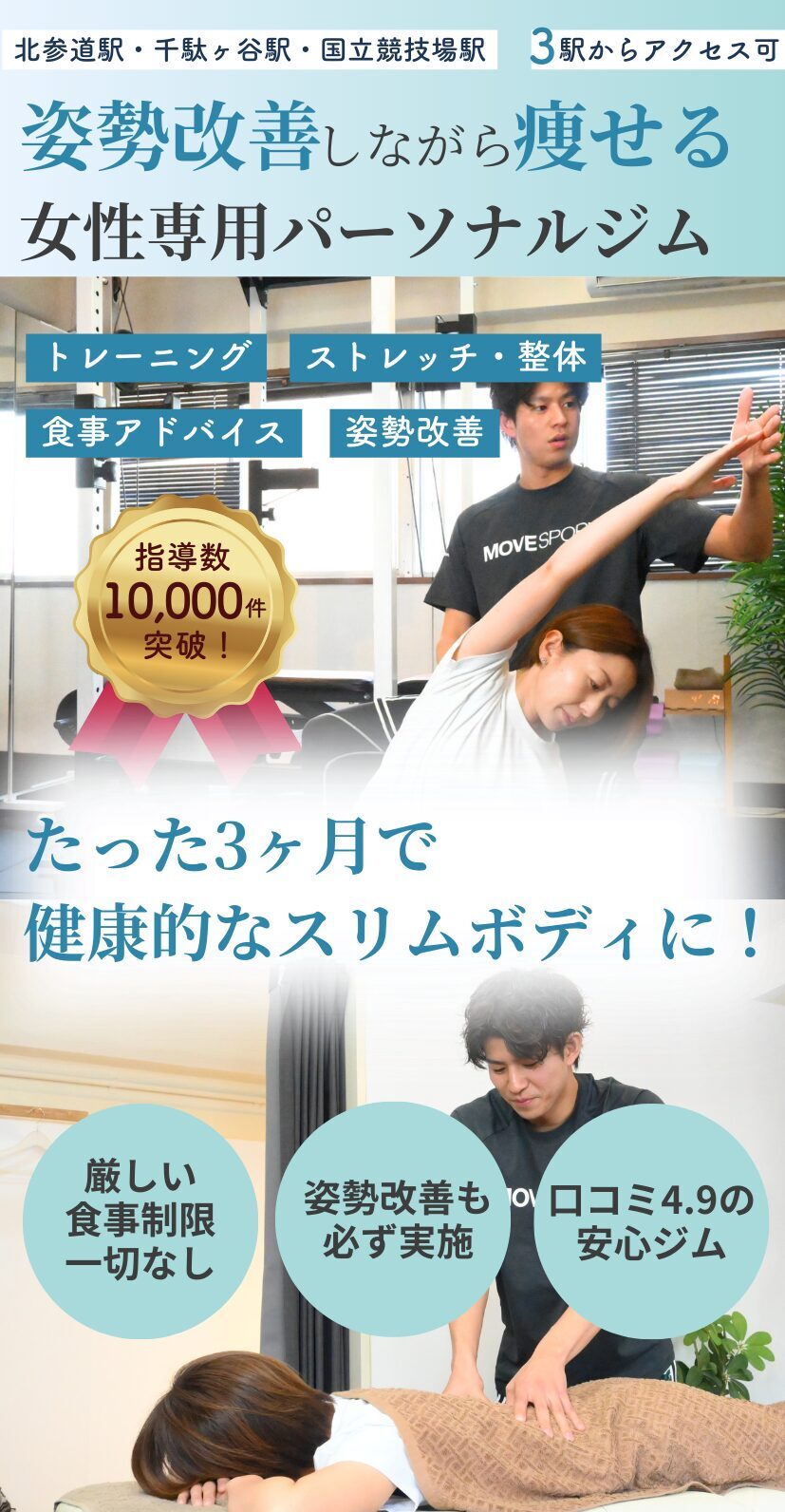 全体的に背骨と骨盤がガチガチでしたので最初の1ヶ月はしっかり骨格調整を行いました。ガチガチが解消したタイミングで筋トレをしたことで太ももとお尻が別人のようになりました。